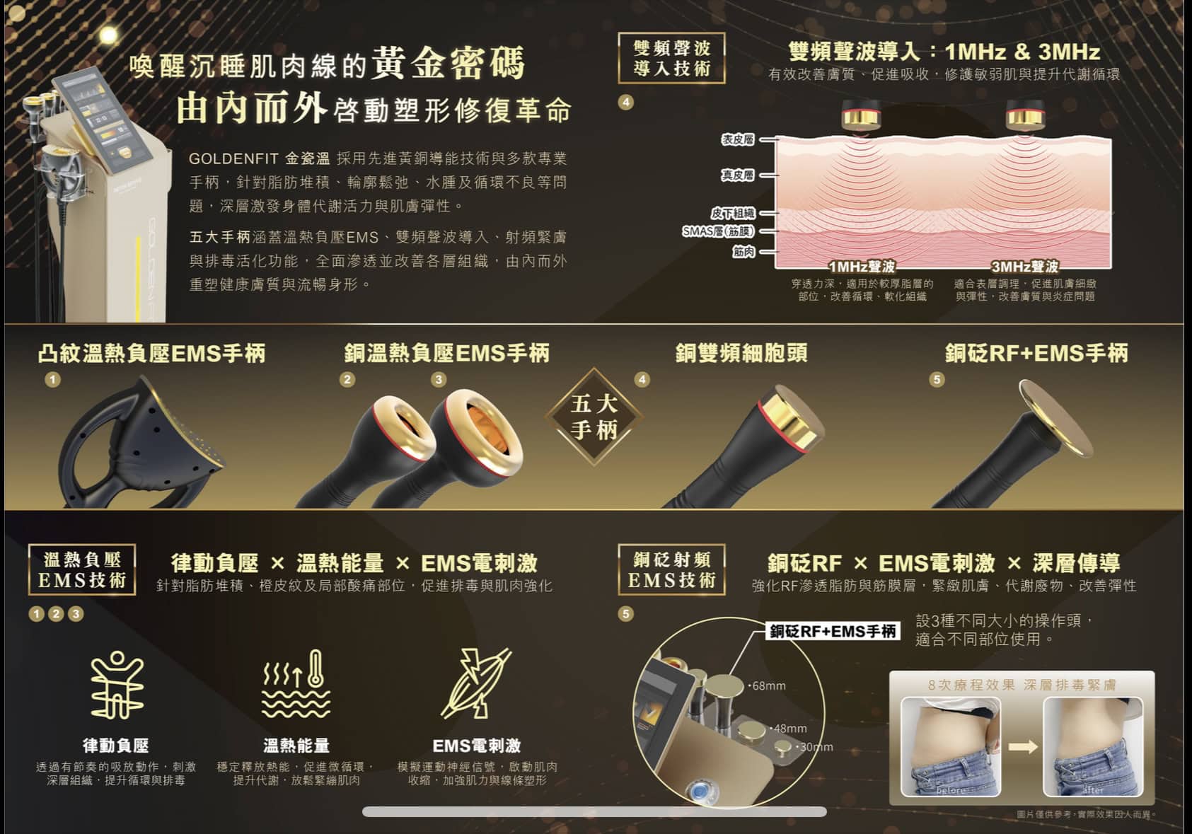 市面上用於輔助減脂的器械種類繁多,但能夠有效去除內臟脂肪的卻寥寥無幾。如果你還在為頑固的內臟脂肪苦惱?現在,這款來自韓國的頂級減脂神器,將為你打破減脂瓶頸,不僅能精准對抗內臟脂肪,更能幫你打造不易復胖的易瘦體質,連皮膚彈性都能同步提升!減內臟脂肪,打造易瘦體質!世界頂級內臟減脂神器!利用448K深入刺激皮下層,有效針對頑固內臟脂方,更利用3MHz細胞激活儀深入皮下30mm促進細胞代謝同血液循環,輕鬆打造夢寐以求既易瘦體質!仲可以提升皮膚彈性,唔怕皮肉分離,首次體驗已經即減1-2cm!